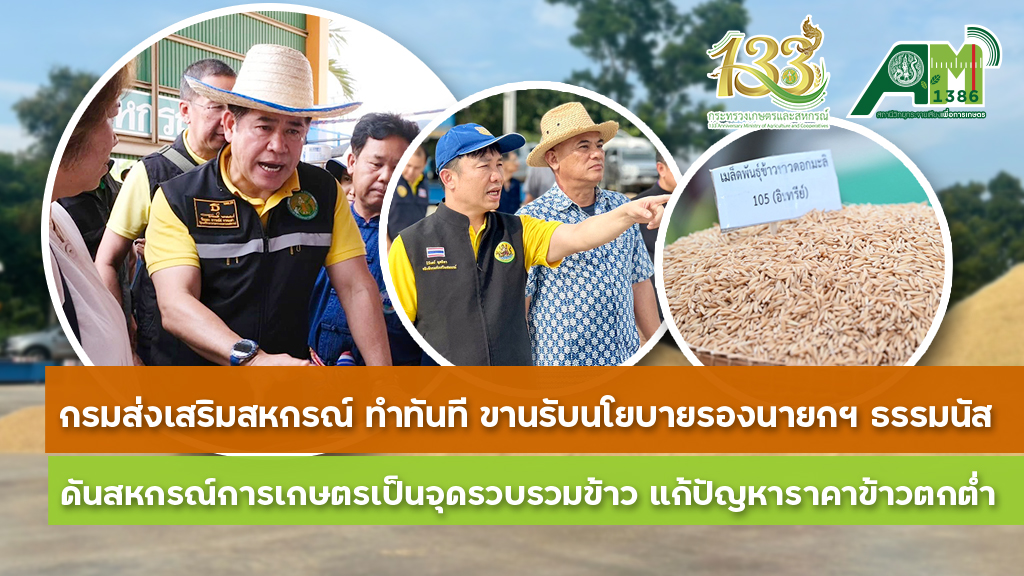 กรมส่งเสริมสหกรณ์ ทำทันที ขานรับนโยบายรองนายกฯ ธรรมนัส ดันสหกรณ์การเกษตรเป็นจุดรวบรวมข้าว แก้ปัญหาราคาข้าวตกต่ำ