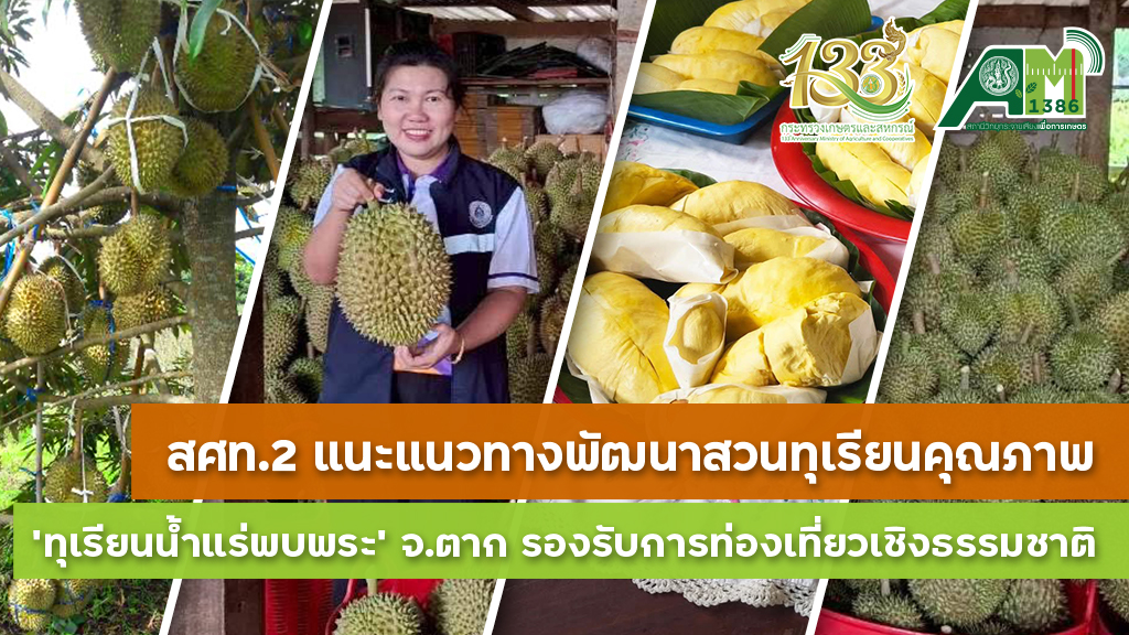 สศท.2 แนะแนวทางพัฒนาสวนทุเรียนคุณภาพ ‘ทุเรียนน้ำแร่พบพระ’ จ.ตาก รองรับการท่องเที่ยวเชิงธรรมชาติ
