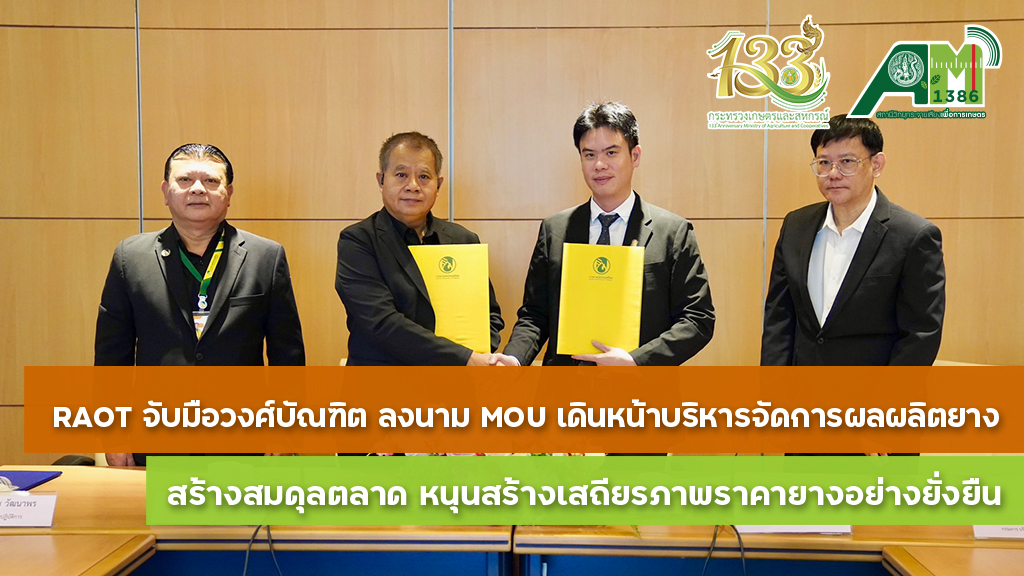 RAOT จับมือวงศ์บัณฑิต ลงนาม MOU เดินหน้าบริหารจัดการผลผลิตยาง สร้างสมดุลตลาด หนุนสร้างเสถียรภาพราคายางอย่างยั่งยืน