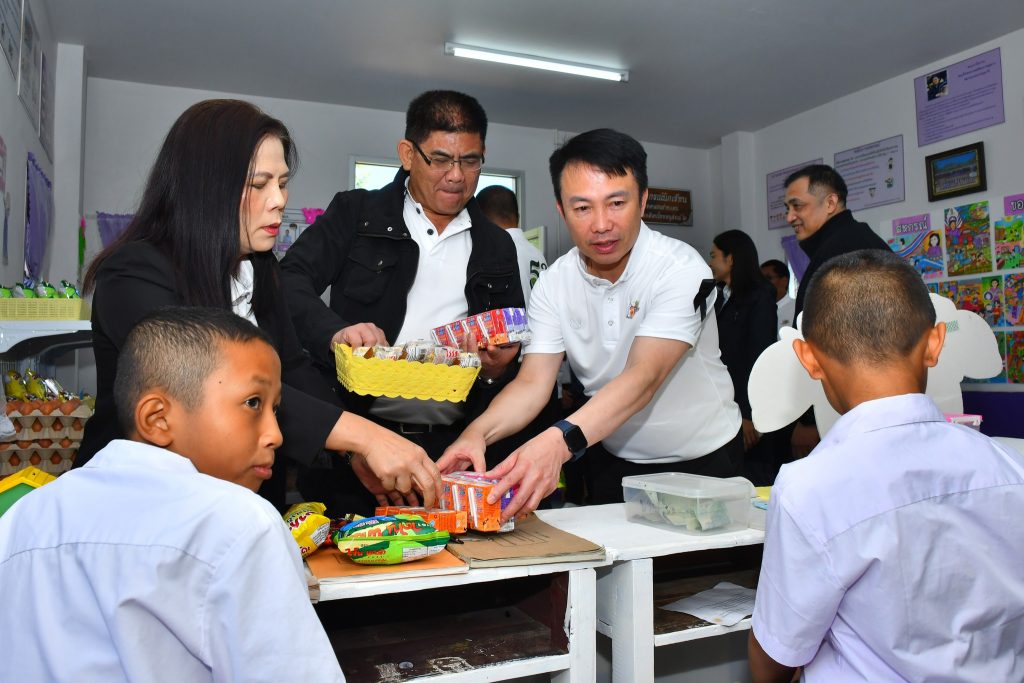 จากนั้น อธิบดีกรมส่งเสริมสหกรณ์ ร่วมเป็นเกียรติส่งมอบเงินบริจาคจากผู้ใหญ่ใจดีทั้ง 3 คณะ ได้แก่ 1.นายพิษณุ คล้ายเจตน์ดี เพื่อน และ (เกลียวเชือก) จำนวน 16,000 บาท 2.ภาคีเครือข่ายสหกรณ์ภาคการเกษตรจังหวัดร้อยเอ็ด จำนวน 15,800 บาท และ 3.สหกรณ์การเกษตรเกษตรวิสัย จำกัด จังหวัดร้อยเอ็ด จำนวน 30,000 บาท ให้แก่คณะครูโรงเรียนตำรวจตระเวนชายแดน ชมรมอนุรักษ์พุทธศิลปะไทยอนุสรณ์ 2 (บ้านปุงยาม) สำหรับใช้ในการพัฒนาสภาพแวดล้อมการเรียนรู้ จัดซื้อวัสดุอุปกรณ์การศึกษา และสนับสนุนกิจกรรมต่าง ๆ ที่ช่วยเสริมทักษะและพัฒนาคุณภาพชีวิตของนักเรียนในพื้นที่ห่างไกล จากนั้น อธิบดีได้นำคณะผู้บริหารกรมร่วมกิจกรรมส่งเสริมการดื่มนม โดยมอบนมกล่องให้เด็กนักเรียนเพื่อเสริมสร้างสุขภาพที่แข็งแรง พร้อมมอบกระปุกออมสินแทนสัญลักษณ์ของการส่งเสริมวินัยการออมโดยให้เด็ก ๆ เรียนรู้การออมเงินตั้งแต่วัยเยาว์ ฝึกวางแผนการใช้จ่าย และเข้าใจคุณค่าของเงิน ซึ่งจะช่วยปลูกฝังนิสัยประหยัด อดออม และความรับผิดชอบทางการเงินในอนาคต
