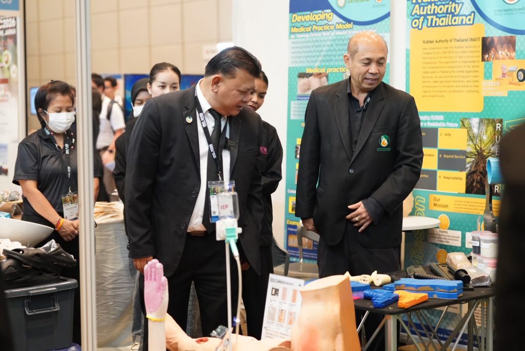 ภายในงาน กยท. ได้นำเสนอผลงานและนวัตกรรมโดยฝ่ายอุตสาหกรรมยาง สถาบันวิจัยยาง และหน่วยธุรกิจ ผ่านบูธนิทรรศการซึ่งจัดแสดงผลิตภัณฑ์ยางพาราหลากหลายประเภท อาทิ หมอนยางพาราเพื่อสุขภาพ, อุปกรณ์นวดอเนกประสงค์แบบพกพา, หุ่นจำลองสำหรับการฝึกช่วยชีวิต CPR, ชุดอุปกรณ์ทางการแพทย์สำหรับฝึกเย็บแผล เป็นต้น ตลอดจนนำเสนอองค์ความรู้การทำสวนยางแบบผสมผสาน การพัฒนาสวนยางอารยเกษตร เพื่อส่งเสริมการผลิตยางพาราอย่างยั่งยืนและเพิ่มมูลค่าทางเศรษฐกิจให้แก่เกษตรกรชาวสวนยาง
