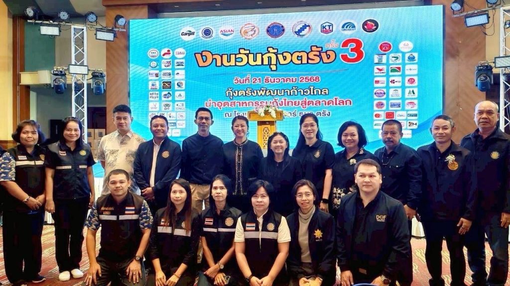 เมื่อวันอาทิตย์ที่ 21 ธันวาคม 2568 ณ โรงแรมธรรมรินทร์ ธนา จังหวัดตรัง นางฐิติพร หลาวประเสริฐ อธิบดีกรมประมง เป็นประธานเปิดงาน “วันกุ้งตรัง” ครั้งที่ 3 ภายใต้แนวคิด “กุ้งตรังพัฒนาก้าวไกล นำอุตสาหกรรมกุ้งไทยสู่ตลาดโลก” เปิดเวทีผนึกกำลังภาครัฐ เอกชน และเกษตรกร ร่วมขับเคลื่อนอุตสาหกรรมกุ้งทะเลของไทยให้เข้มแข็ง สามารถแข่งขันในตลาดโลกได้อย่างยั่งยืน โดยมีนายมานิตย์ อินทองปาน ประธานกรรมการสหกรณ์เพาะเลี้ยงสัตว์น้ำจังหวัดตรัง จำกัด ให้การต้อนรับ ร่วมกับหัวหน้าส่วนราชการ และกลุ่มเกษตรกรผู้เลี้ยงกุ้งทะเลในพื้นที่จังหวัดตรังและจังหวัดใกล้เคียง