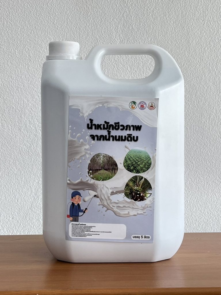 นายญาณกิตติ์ ฮารุดีน รองผู้ว่าการด้านธุรกิจ เปิดเผยว่า จากปัญหาน้ำนมโคดิบล้นตลาดที่เกิดขึ้น กยท. ได้รับนโยบายจากกระทรวงเกษตรและสหกรณ์ให้เข้ามามีส่วนร่วมในการแก้ไขปัญหาอย่างเร่งด่วนในการช่วยเหลือเกษตรกรผู้เลี้ยงโคนม ดังนั้น กยท. โดยหน่วยธุรกิจจึงได้เข้ารับซื้อน้ำนมดิบจากเกษตรกรผู้เลี้ยงโคนม โดยเฟสที่ 1 รับซื้อในปริมาณ 395.56 ตัน และเฟสที่ 2 รับซื้อในปริมาณ 305.24 ตัน รวมทั้งสิ้น 700.80 ตัน โดยน้ำนมดิบดังกล่าวจะถูกนำไปผลิตเป็นน้ำหมักชีวภาพจากน้ำนมดิบคุณภาพสูง ได้มากกว่า 1 ล้านลิตร โดยเป็นผลิตภัณฑ์คุณภาพสูงที่อุดมไปด้วยธาตุอาหารและแร่ธาตุสำคัญ โดยเฉพาะไนโตรเจน โปรตีน และกรดอะมิโน ซึ่งเกิดจากกระบวนการหมักนมสดร่วมกับกากน้ำตาลและจุลินทรีย์ที่มีประโยชน์ ผ่านการรับรองมาตรฐานจากกรมพัฒนาที่ดิน (พด.) โดยประโยชน์ของน้ำหมักชีวภาพจากน้ำนมดิบ สามารถช่วยส่งเสริมการเจริญเติบโตของพืช ทำให้พืชเติบโตเร็ว ใบเขียว ลำต้นแข็งแรง ช่วยเร่งการพัฒนาระบบราก เพิ่มความร่วนซุยของดินจากกรดแลกติก และช่วยป้องกันโรคพืช โดยเฉพาะโรคราน้ำค้าง เนื่องจากมีคุณสมบัติเป็นสารต้านเชื้อรา นอกจากนี้ ยังช่วยเพิ่มคุณภาพและรสชาติของพืชผักและผลไม้ ให้มีรสชาติหวาน กรอบ และมีคุณภาพดีขึ้น ทั้งนี้ น้ำหมักชีวภาพจากน้ำนมดิบสามารถใช้ได้ทั้งในสวนยางพารา รวมถึงพืชอื่นๆ ที่ปลูกร่วมสวนยางเลือกในโครงการอารยเกษตร ของ กยท. เช่น กาแฟ โกโก้ และพืชเศรษฐกิจชนิดอื่น เช่น ไม้ผล พืชผัก เป็นต้น