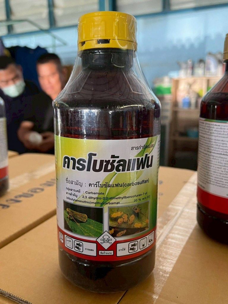 จากการตรวจค้น เจ้าหน้าที่พบวัตถุอันตรายทางการเกษตรที่ไม่ได้ขึ้นทะเบียนจำนวน 16 รายการ มูลค่ารวมประมาณ 140,000 บาท โดยของกลางส่วนใหญ่เป็นสารเคมีกำจัดแมลง อาทิ คาร์โบซัลแฟน ไตรอะโซฟอส อิมิดาโคลพริด อะเซทรามีพริด คลอร์ฟีนาเพอร์ คลอแรนทรานิลิโพรล และบูโพรเฟซิน เจ้าหน้าที่จึงได้ตรวจยึดและอายัดของกลางทั้งหมด พร้อมส่งตัวอย่างไปตรวจวิเคราะห์ในห้องปฏิบัติการ และรวบรวมพยานหลักฐานเพื่อดำเนินคดีกับผู้กระทำความผิดตามกฎหมายต่อไป