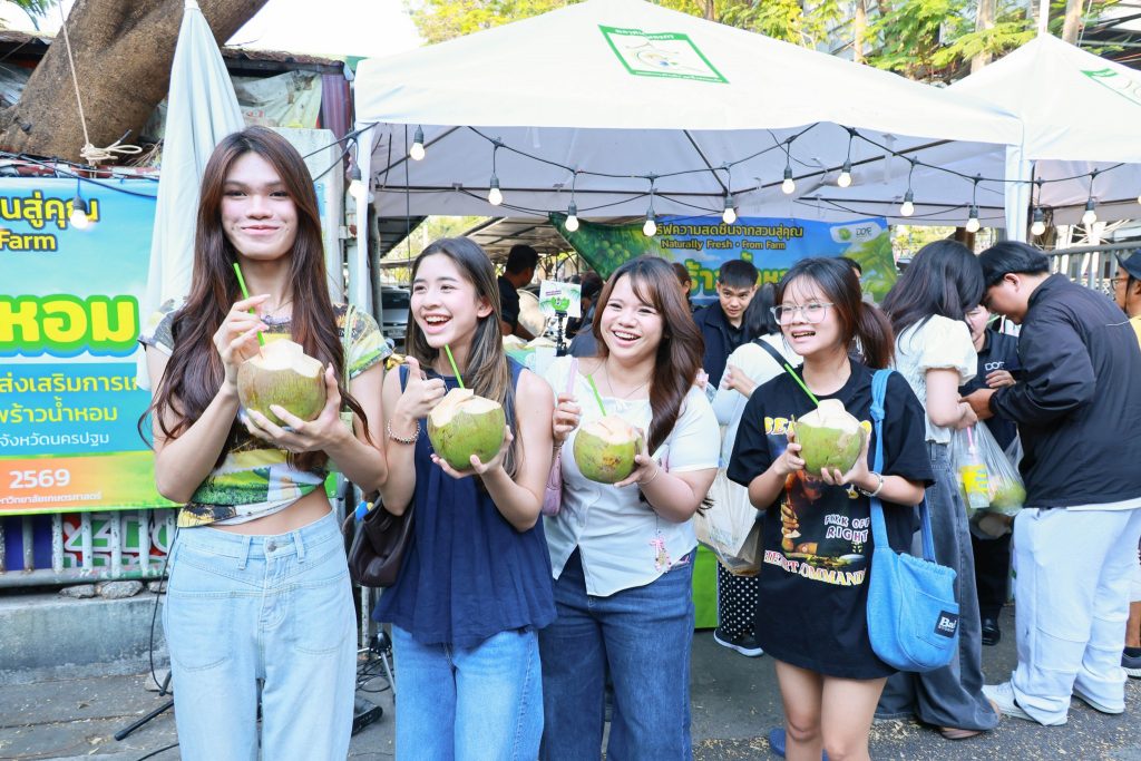 นางอัญชลี สุวจิตตานนท์ อธิบดีกรมส่งเสริมการเกษตร เปิดเผยว่า การจัดกิจกรรมในครั้งนี้มีเป้าหมายเพื่อช่วยเกษตรกรระบายผลผลิต เพิ่มช่องทางการจำหน่าย และสร้างรายได้ให้แก่เกษตรกรผู้ปลูกมะพร้าวน้ำหอม พร้อมเปิดโอกาสให้ผู้บริโภคได้เลือกซื้อมะพร้าวน้ำหอมสดจากสวน รวมถึงผลิตภัณฑ์แปรรูปจากมะพร้าวคุณภาพดีโดยตรงจากเกษตรกร เช่น วิสาหกิจชุมชนพิทักษ์สาคร หรือ สวนมะพร้าวเดี่ยวบ้านแพ้ว จ.สมุทรสาคร, วิสาหกิจชุมชนผลิตผลไม้ปลอดภัยบ้านรางสีหมอก จาก จ.ราชบุรี สวนมะพร้าวน้ำหอม ส.พรชัย Young Smart Farmer จาก จ.นครปฐม รวมถึงการจัดโปรโมชั่นพิเศษอย่างต่อเนื่อง จำหน่ายมะพร้าวน้ำหอมในราคาพิเศษ เพื่อจูงใจให้ประชาชนร่วมจับจ่ายใช้สอย ซึ่งได้รับความสนใจจากประชาชนและผู้เข้าร่วมงานเป็นจำนวนมาก ส่งผลให้มียอดจำหน่ายมะพร้าวน้ำหอมเฉลี่ยวันละกว่า 2 ตัน สะท้อนถึงความนิยมและความเชื่อมั่นของผู้บริโภคที่มีต่อมะพร้าวน้ำหอมไทย