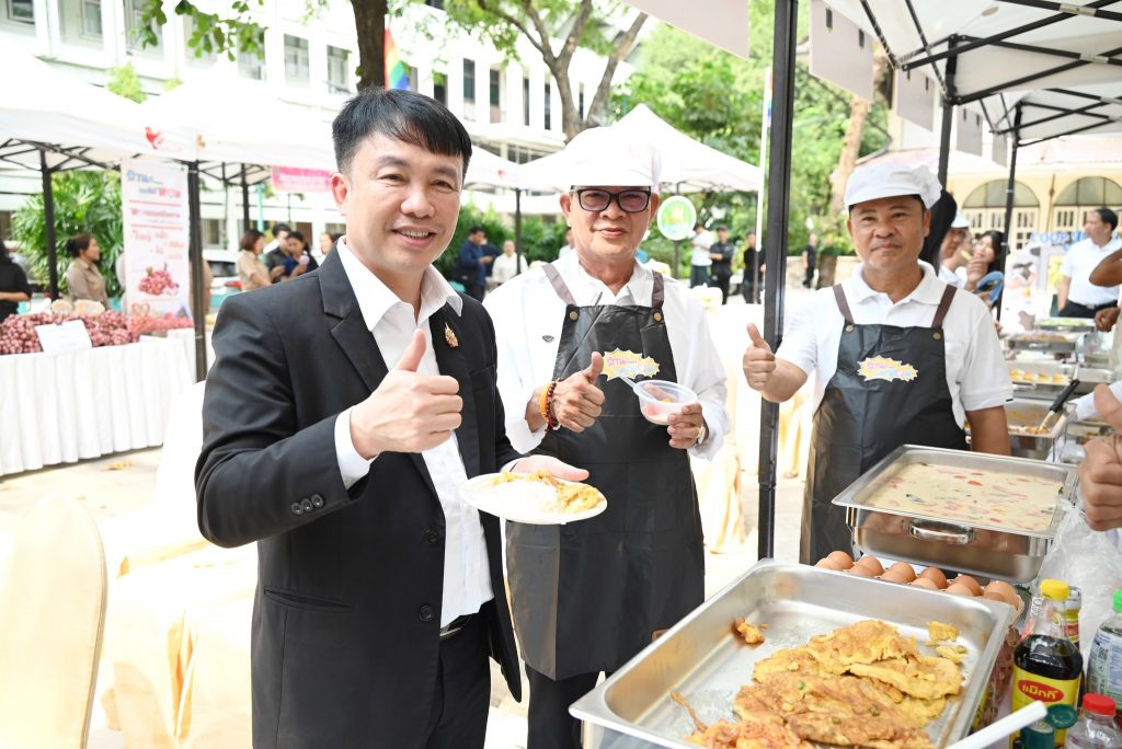 โอกาสนี้ อธิบดีกรมส่งเสริมสหกรณ์ ได้ร่วมสาธิตการทำเมนูยำรวมมิตร โดยเลือกใช้หอมหัวใหญ่เป็นหนึ่งในวัตถุดิบหลัก เนื่องจากหอมหัวใหญ่มีคุณสมบัติช่วยเพิ่มความหวานตามธรรมชาติ ลดความเลี่ยนของอาหาร และให้เนื้อสัมผัสที่กรอบสด เมื่อนำมาคลุกเคล้ากับวัตถุดิบอื่น ๆ เช่น กุ้ง หมูสับ หมูยอ ไส้กรอก และผักต่าง ๆ อาทิ มะเขือเทศ ขึ้นฉ่าย พร้อมน้ำยำรสแซ่บ จะช่วยยกระดับรสชาติของเมนูให้กลมกล่อมและน่ารับประทานมากยิ่งขึ้น ส่วนคณะผู้บริหารกรมส่งเสริมสหกรณ์ได้ร่วมกันปรุงอาหารจากเมนูต่างๆ โดยใช้หอมแดงเป็นวัตถุดิบในการประกอบอาหาร ซึ่งถือเป็นกิจกรรมการนำผลผลิตหอมหัวใหญ่ และหอมแดงศรีสะเกษ ที่เป็นสินค้าเกษตรคุณภาพ การันตีด้วย สิ่งบ่งชี้ทางภูมิศาสตร์ (GI) โดยจุดเด่นของหอมแดงศรีสะเกษ คือ หัวใหญ่เนื้อแน่น เปลือกบาง สีสวยตามธรรมชาติ กลิ่นหอมฉุนเฉพาะตัวให้รสชาติเข้มข้นเหมาะกับทุกเมนูอาหาร และมีสรรพคุณในการเสริมภูมิคุ้มกัน ลดอาการหวัด คัดจมูก บำรุงหัวใจช่วยกระตุ้นการไหลเวียนโลหิต และระบบย่อยอาหาร ซึ่งการจัดกิจกรรมในครั้งนี้ เป็นการเผยแพร่ประชาสัมพันธ์สร้างการรับรู้ และกระตุ้นการบริโภคหอมแดงและหอมหัวใหญ่คุณภาพจากเกษตรกร โดยเฉพาะหอมแดงศรีสะเกษ ซึ่งเป็นสินค้าเกษตรอัตลักษณ์พื้นถิ่นและสินค้าเกษตรปลอดภัย ให้เป็นที่รู้จักในวงกว้างและมีช่องทางการจำหน่ายเพิ่มมากขึ้น