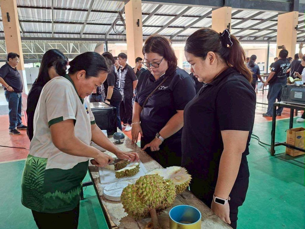 ซึ่งโครงการดังกล่าวเป็นเวทีสำคัญในการยกระดับศักยภาพเกษตรกรและเจ้าหน้าที่ผู้เกี่ยวข้อง เพื่อให้มีความพร้อมในการผลิตและเก็บเกี่ยวทุเรียนคุณภาพ โดยเน้นการปฏิบัติตามมาตรการสำคัญของจังหวัด ได้แก่ การกำหนดช่วงเก็บเกี่ยวที่เหมาะสม และการตรวจวิเคราะห์น้ำหนักเนื้อแห้งของทุเรียน “ตรวจก่อนตัด” เพื่อให้ผลผลิตมีคุณภาพได้มาตรฐาน สร้างความเชื่อมั่นแก่ผู้บริโภคทั้งในและต่างประเทศ