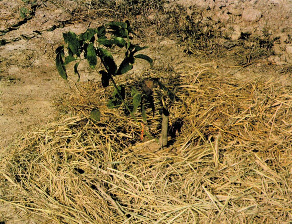 การคลุมโคนต้นยาง กรณีต้นยางอายุ 1–3 ปี ต้นยางยังมีขนาดเล็กและร่มเงาน้อย ควรคลุมโคนต้นก่อนหน้าแล้งประมาณ 1 เดือน ด้วยวัสดุธรรมชาติในท้องถิ่นโดยเกษตรกรชาวสวนยางสามารถใช้ ฟางข้าว หญ้าแห้ง หรือเศษพืชคลุมเป็นวงกว้างราว 1 เมตร หนาประมาณ 10 เซนติเมตร เว้นระยะห่างจากโคนต้น 5–10 เซนติเมตรหรือประมาณ 1 ฝ่ามือ เพื่อรักษาความชื้นในดิน แต่ควรระมัดระวังความเสี่ยงการเกิดไฟไหม้จากวัสดุแห้งได้เช่นกัน