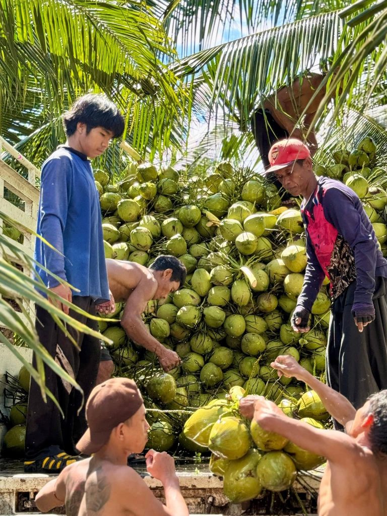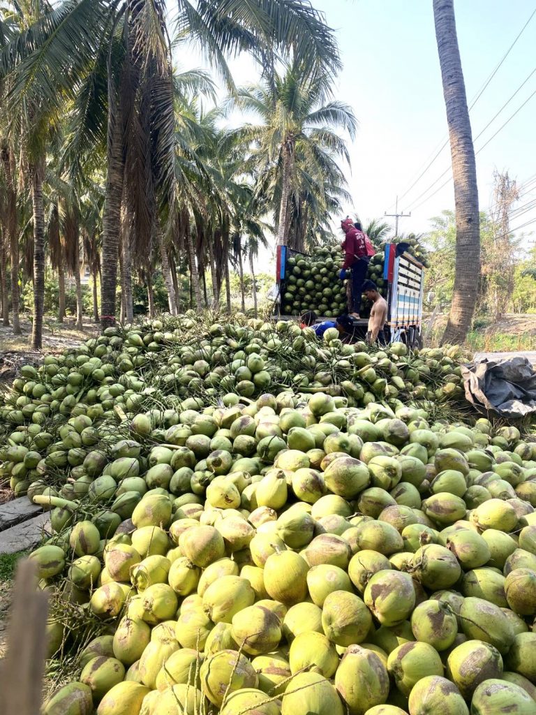 “ช่วงแรกสหกรณ์ประกันราคาไม่ต่ำกว่า 5 บาท แต่ตอนนี้ลงมาอยู่ที่ 4.50 ต่อลูก เพราะโรงงานรับซื้อก็ไม่ค่อยไหว แต่โรงงานให้เรา 4.60 บาท สหกรณ์หักไว้ 10 สตางค์ต่อลูก เพื่อเป็นค่าบริหารจัดการ ตอนที่มะพร้าวราคาดี ๆ โรงงานตัดให้สหกรณ์ลูกละ 20 สตางค์ ซึ่งเราก็เข้าใจเขาเหมือนกันในสถานการณ์เช่นนี้” ที่ปรึกษาและสมาชิกสหกรณ์การเกษตรผู้ปลูกมะพร้าวน้ำหอมแปลงใหญ่วัดเพลง เผย