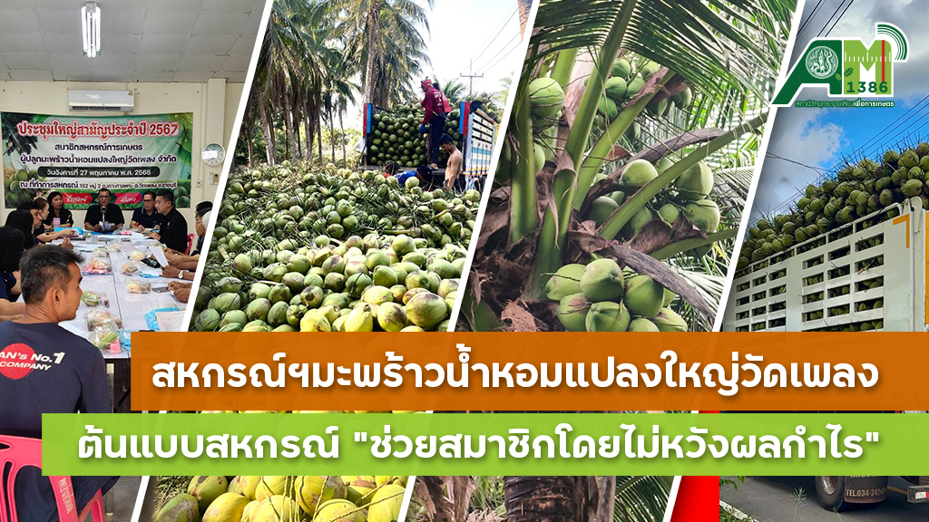สหกรณ์ฯ มะพร้าวน้ำหอมแปลงใหญ่วัดเพลง ต้นแบบสหกรณ์ ”ช่วยสมาชิกโดยไม่หวังผลกำไร”