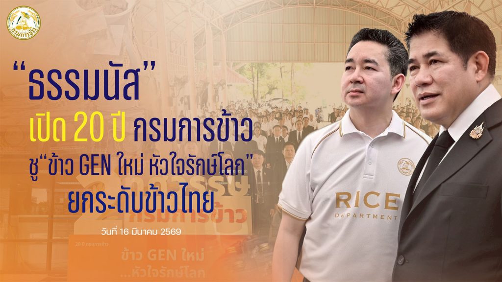 วันที่ 16 มีนาคม 2569 ณ กรมการข้าว ร้อยเอกธรรมนัส พรหมเผ่า รองนายกรัฐมนตรีและรัฐมนตรีว่าการกระทรวงเกษตรและสหกรณ์ เป็นประธานเปิดงานวันคล้ายวันสถาปนากรมการข้าว ครบรอบ 20 ปี พร้อมเยี่ยมชมนิทรรศการภายใต้แนวคิด “ข้าว GEN ใหม่ หัวใจรักษ์โลก” และเป็นประธานในพิธีมอบรางวัลเชิดชูเกียรติบุคลากรและหน่วยงานดีเด่นของกรมการข้าว