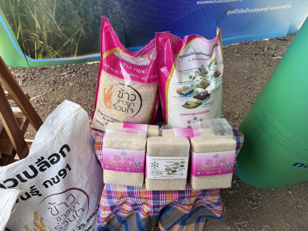 ด้านนายมุ่งมาตร วังกะ ผู้อำนวยการศูนย์วิจัยข้าวปทุมธานี กล่าวว่า ที่ผ่านมาศูนย์วิจัยข้าวปทุมธานีได้ผลักดันกลุ่มเครือข่ายเกษตรกร “ข้าวชาวนาร่วมใจ” จังหวัดปทุมธานี เข้าร่วมโครงการพัฒนากระบวนการผลิตและแปรรูปข้าวแบบลดการปล่อยก๊าซเรือนกระจก โดยได้ขอฉลากคาร์บอนของผลิตภัณฑ์ข้าว 4 ชนิด จากองค์การบริหารก๊าซเรือนกระจก (อบก.) ได้แก่ ข้าว กข43 ขนาดบรรจุ 1 กิโลกรัม, กข43 ขนาดบรรจุ 5 กิโลกรัม, กข91 ขนาดบรรจุ 5 กิโลกรัม และเมล็ดพันธุ์ข้าว กข91 ขนาดบรรจุ 25 กิโลกรัม ขณะนี้ได้รับฉลากคาร์บอน (Carbon Label) รับรองเรียบร้อยแล้ว ถือเป็นผลิตภัณฑ์ข้าวของกลุ่มเกษตรกรรายแรกในเขตภาคกลางที่มีการติดฉลากคาร์บอน ปัจจุบันมีเกษตรกรที่เข้าร่วมในเครือข่ายข้าวชาวนาร่วมใจจำนวน 77 ราย พื้นที่รวม 1975 ไร่ ดังนี้ 1. ศูนย์ข้าวชุมชนคลอง 13 อ.ลำลูกกา จ.ปทุมธานี มีสมาชิก 20 ราย พื้นที่รวม 601 ไร่ 2. ศูนย์ข้าวชุมชนสหกรณ์การเกษตรลำลูกกา อ.ลำลูกกา จ.ปทุมธานี มีสมาชิก 35 ราย พื้นที่รวม 867 ไร่ และ 3. ศูนย์ข้าวชุมชนบึงสมบูรณ์ อ.หนองเสือ จ.ปทุมธานี มีสมาชิก 22 ราย พื้นที่รวม 507 ไร่ และมีโรงสีข้าวได้รับมาตรฐาน GHP มาตรฐาน HACCP และมาตรฐานสินค้า Q เพื่อยกระดับความปลอดภัยของอาหารสู่ขั้นสูงสุดที่โรงสีข้าวชุมชนคลอง 13 อีกด้วย