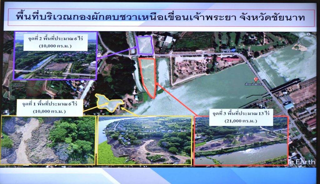 จากนั้น พลเรือเอก ปวิตร รุจิเทศ ผู้อำนวยการศูนย์อำนวยการใหญ่จิตอาสาพระราชทาน และคณะ ลงพื้นที่เพื่อตรวจดูความเรียบร้อยบริเวณกองผักตบชวาบริเวณเหนือเขื่อนเจ้าพระยา