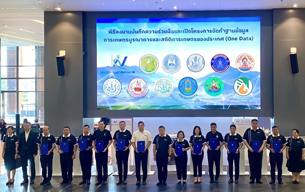 สำหรับ 12 หน่วยงานที่ร่วมลงนามขับเคลื่อนการจัดทำฐานข้อมูลการเกษตรบูรณาการ (One Data) ในครั้งนี้ ประกอบด้วย สำนักงานสถิติแห่งชาติ กระทรวงดิจิทัลเพื่อเศรษฐกิจและสังคม ซึ่งเป็นหน่วยงานหลักในการจัดทำฐานข้อมูลการเกษตร และหน่วยงานในสังกัดกระทรวงเกษตรและสหกรณ์อีก 11 หน่วยงาน ได้แก่ สำนักงานปลัดกระทรวงเกษตรและสหกรณ์ สำนักงานเศรษฐกิจการเกษตร กรมส่งเสริมการเกษตร กรมประมง กรมปศุสัตว์ กรมหม่อนไหม กรมพัฒนาที่ดิน สำนักงานการปฏิรูปที่ดินเพื่อเกษตรกรรม กรมชลประทาน กรมส่งเสริมสหกรณ์ และการยางแห่งประเทศไทย