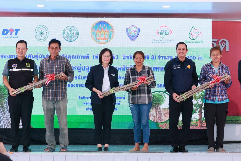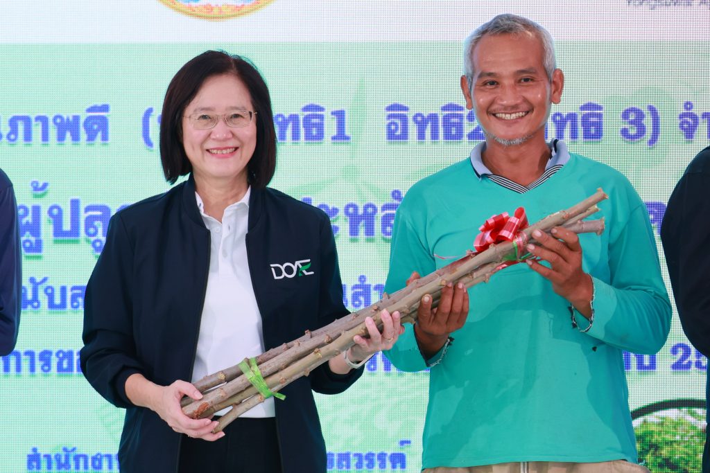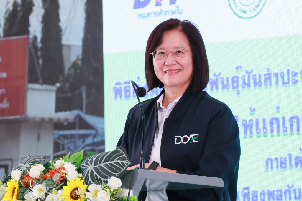 นางอัญชลี สุวจิตตานนท์ อธิบดีกรมส่งเสริมการเกษตร เปิดเผยภายหลังพิธีส่งมอบท่อนพันธุ์มันสำปะหลังพันธุ์ต้านทานโรคใบด่างมันสำปะหลัง ที่บริษัท ยงสุวัฒน์ อะกรีเทรด จำกัด อำเภอตากฟ้า จังหวัดนครสวรรค์ ว่า กิจกรรมดังกล่าวจัดขึ้นภายใต้โครงการสนับสนุนท่อนพันธุ์มันสำปะหลังคุณภาพดีให้เพียงพอกับความต้องการของตลาด ปี 2568/69 โดยกรมการค้าภายใน ซึ่งเป็นการบูรณาการความร่วมมือกับกรมส่งเสริมการเกษตร กรมวิชาการเกษตร มูลนิธิสถาบันพัฒนามันสำปะหลังแห่งประเทศไทย และมูลนิธิกองทุนมันสำปะหลัง เพื่อกระจายพันธุ์มันต้านทานถึงมือเกษตรกร เพื่อแก้ไขปัญหาโรคใบด่างมันสำปะหลัง หวังช่วยลดต้นทุนการผลิต ยกระดับประสิทธิภาพการผลิตของเกษตรกรอย่างเป็นรูปธรรม และสร้างความเสถียรภาพให้กับอุตสาหกรรมในระยะยาว