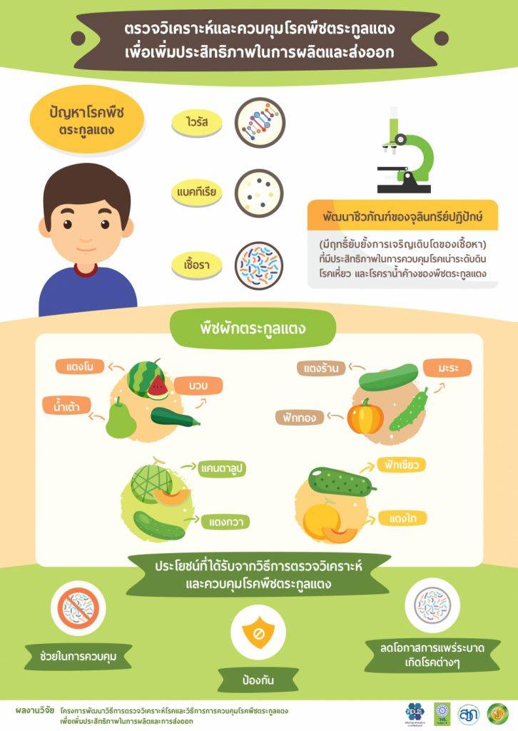 ตรวจวิเคราะห์และควบคุมโรคพืชตระกูลแตง 23 ต.ค. 256323 ต.ค. 2020 webmaster Infographic 1,192 ตรวจวิเคราะห์และควบคุมโรคพืชตระกูลแตงเพื่อเพิ่มประสิทธิภาพในการผลิตและส่งออก ข่าวที่เกี่ยวข้อง ถ่านอัดแท่ง พลังงานทดแทน เพิ่มรายได้ วัสดุเหลือทิ้งจากกาแฟ สู่ปุ๋ยหมักรักษ์โลก เกษตรเมืองสระแก้วได้พัฒนา “ไลน์บอทโรคข้าว” คำแนะนำการปลูกพืชใช้น้ำน้อย หลังเก็บเกี่ยวข้าวนาปี พืชผักกับฤดูฝน แปรรูปลำไยให้แซบนัว! กลายเป็น “ยำลำไย”