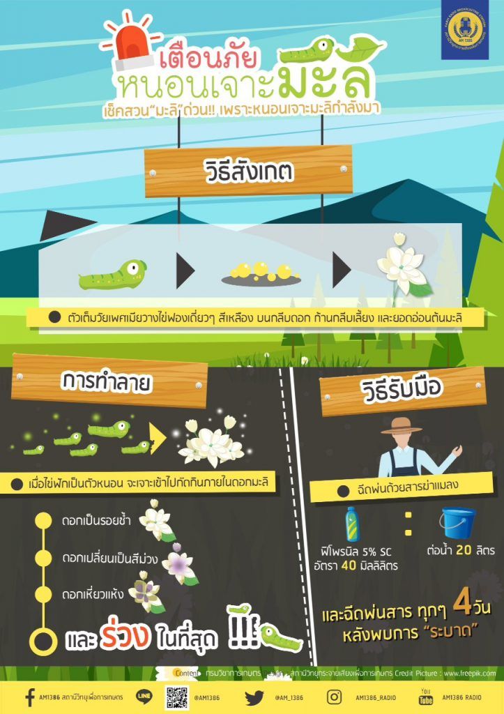 เตือนภัยหนอนเจาะมะลิ 20 ม.ค. 256321 ม.ค. 2020 Stystem Infographic 1,148 ข่าวที่เกี่ยวข้อง ถ่านอัดแท่ง พลังงานทดแทน เพิ่มรายได้ วัสดุเหลือทิ้งจากกาแฟ สู่ปุ๋ยหมักรักษ์โลก เกษตรเมืองสระแก้วได้พัฒนา “ไลน์บอทโรคข้าว” คำแนะนำการปลูกพืชใช้น้ำน้อย หลังเก็บเกี่ยวข้าวนาปี พืชผักกับฤดูฝน แปรรูปลำไยให้แซบนัว! กลายเป็น “ยำลำไย”