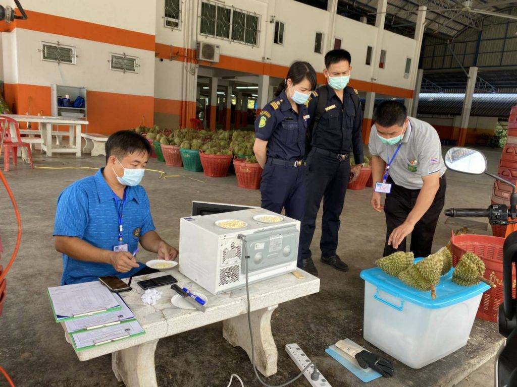 “ในปี 2564 นี้ กรมวิชาการเกษตรไม่เพียงแต่จะเข้มงวดการตรวจศัตรูพืชในผลผลิตเท่านั้น แต่ยังเน้นการตรวจทุเรียนด้อยคุณภาพหรือทุเรียนอ่อน รวมถึงการปฏิบัติตามมาตรฐานขององค์การอนามัยโลกเพื่อป้องกันการปนเปื้อนของเชื้อไวรัสโคโรนา 2019 โดยมอบหมายให้สำนักวิจัยและพัฒนาการเกษตรเขตที่ 6 จันทบุรี (สวพ.6) ร่วมกับหน่วยงานกรมวิชาการเกษตรในพื้นที่ภาคตะวันออก จัดเจ้าหน้าที่เป็นกำลังเสริมให้บริการเพิ่มจากเดิมจำนวนถึง 2 เท่า เพื่อปฏิบัติงานออกใบรับรองสุขอนามัยพืชร่วมกับเจ้าหน้าที่ด่านตรวจพืชให้เป็นด้วยความสะดวกและรวดเร็วยิ่งขึ้น โดย สวพ.6 จะรับภารกิจหลักตรวจทุเรียนอ่อน และกำกับดูแลการใช้ใบรับรอง GAP ของผู้ส่งออก เพื่อผลักดันการส่งออกผลไม้ของภาคตะวันออกที่มีคุณภาพได้ตามมาตรฐาน GAP และ GMP ซึ่งสร้างรายได้ให้แก่เกษตรกรในแต่ละปีจำนวนมาก รวมทั้งยังสามารถรักษาตลาดทุเรียนไทยในประเทศจีนซึ่งเป็นตลาดนำเข้าทุเรียนที่ใหญ่เป็นอันดับ 1 ของไทยได้ต่อไป” อธิบดีกรมวิชาการเกษตร กล่าว
