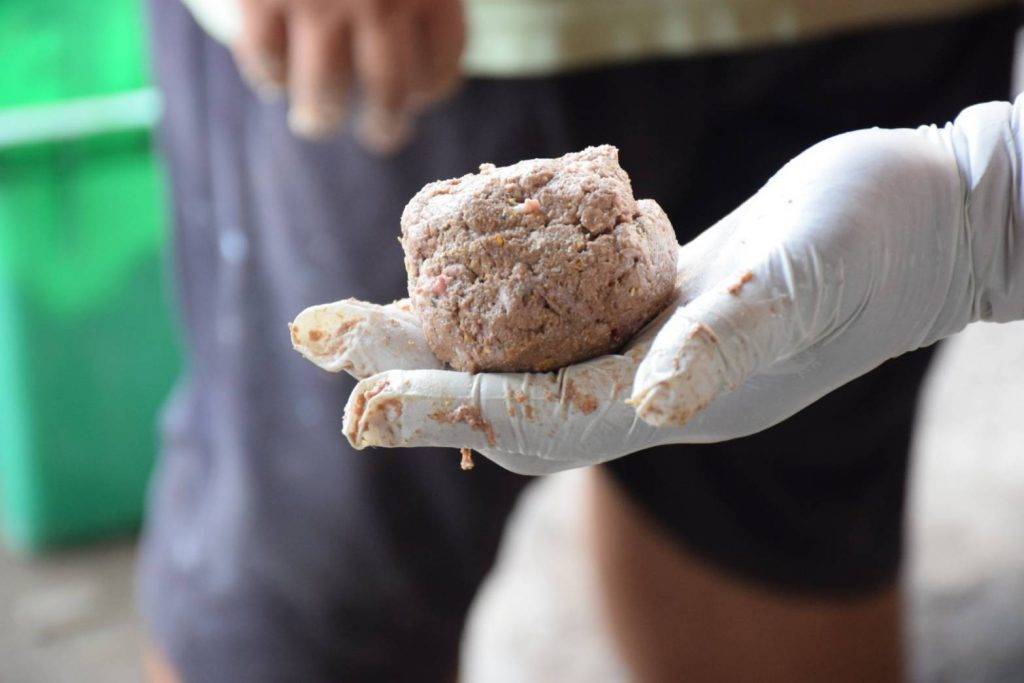 | 2. โครงไก่บดสด | 8.8 กิโลกรัม (2.2 กิโลกรัมแห้ง) | 880 กรัม |