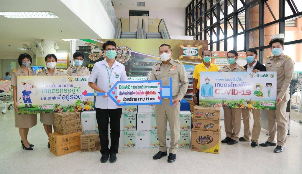 กรมส่งเสริมการเกษตรเดินหน้าโครงการแบ่งปันน้ำใจ เกษตรไทยสู้ภัยโควิด-19 ส่งมอบสินค้าเกษตรคุณภาพและสินค้าอุปโภคบริโภค เพื่อส่งมอบให้กับบุคลากรทางการแพทย์ ผู้ปฏิบัติงานที่เกี่ยวข้อง และประชาชนผู้ประสบภัยจากโรคโควิด – 19 ล่าสุด อธิบดีเข้มแข็งเดินทางไปส่งมอบสินค้าเกษตร พร้อมมอบเงินบริจาคให้กับสถาบันบำราศนราดูร เพื่อเป็นขวัญกำลังใจในการทำหน้าที่ดูแลประชาชน และต่อสู้กับภัย COVID – 19 ต่อไป