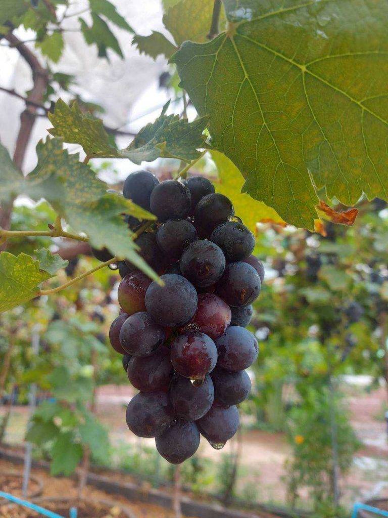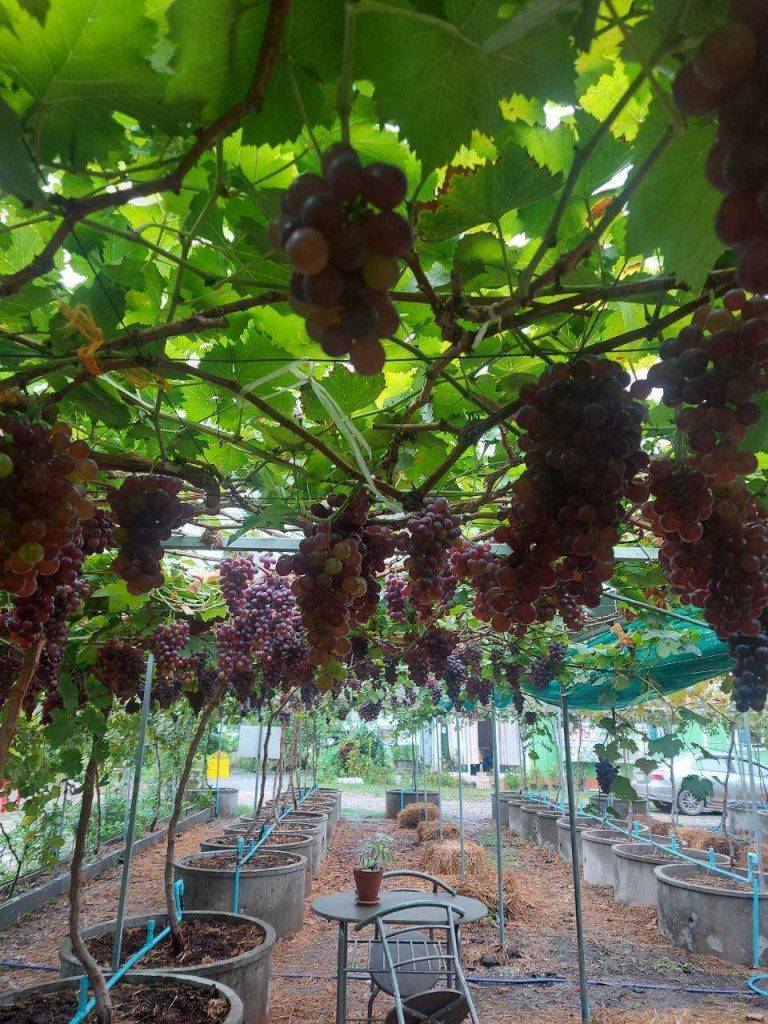 อย่างไรก็ตาม นายวิชัยเห็นว่าการปลูกผักนั้นทำได้ง่ายและปลูกกันมาก ทำให้ในบางช่วงผลผลิตมากจนล้นตลาดราคาผักตกต่ำ จึงศึกษาหาข้อมูลการปลูกพืชอื่นๆ จนพบว่าองุ่นเป็นพืชที่น่าสนใจสร้างรายได้ดีกว่าผักสลัดและยังมีการปลูกน้อยจึงได้เริ่มต้นปลูกองุ่นครั้งแรกจำนวน 26 ต้น โดยปลูกในวงบ่อใช้วัสดุปลูกที่ทำเอง ให้น้ำแบบสปริงเกอร์โดยผสมน้ำหมักไปกับระบบน้ำด้วย จากการหมั่นสังเกตและดูแลเอาใส่ใจอย่างใกล้ชิด ทำให้องุ่นเจริญเติบโตและให้ผลผลิตดี จึงตัดสินใจขยายพื้นที่ปลูกเพิ่มขึ้น พันธุ์ที่ปลูก ได้แก่ พันธุ์แบล็คโอปอร์ ไวท์มะละกา ป๊อกดำ บิวตี้ รูทเพอเรท ไชน์มัสแคท และพันธุ์คาร์ดินัล โดยการปลูกมีทั้งระบบโรงเรือนแบบเปิดและโรงเรือนแบบปิด