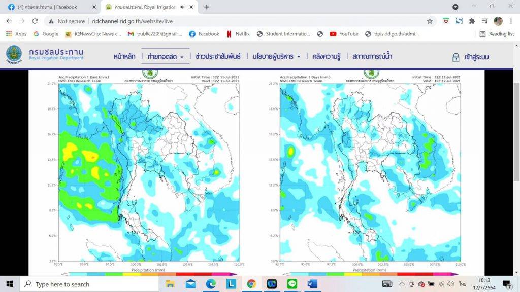 จากการคาดการณ์ของกรมอุตุนิยมวิทยา ในช่วงระหว่างวันที่ 12 – 13 ก.ค. 64 ร่องมรสุมที่พาดผ่านบริเวณภาคกลาง ภาคตะวันออก และภาคตะวันออกเฉียงเหนือตอนล่าง มีกำลังอ่อนลง ในขณะที่มรสุมตะวันตกเฉียงใต้ที่พัดปกคลุมทะเลอันดามัน ภาคใต้ และอ่าวไทย มีกำลังปานกลาง ลักษณะเช่นนี้ยังคงทำให้บริเวณประเทศไทยมีฝนตกหนักบางแห่ง ส่วนในวันที่ 14 – 18 ก.ค. 64 ร่องมรสุมพาดยังคงผ่านบริเวณภาคเหนือ ภาคกลาง ภาคตะวันออก และภาคตะวันออกเฉียงเหนือ ประกอบกับมรสุมตะวันตกเฉียงใต้พัดปกคลุมทะเลอันดามัน ประเทศไทย และอ่าวไทย ทำให้ประเทศไทยมีฝนตกต่อเนื่อง และมีฝนตกหนักบางแห่ง ขอให้ประชาชนในพื้นที่เสี่ยงภัยบริเวณภาคเหนือ ภาคตะวันออกเฉียงเหนือ ภาคกลาง ภาคตะวันออก และภาคใต้ ระวังอันตรายจากฝนตกหนักถึงหนักมากและฝนตกสะสม ซึ่งอาจทำให้เกิดน้ำท่วมฉับพลันและน้ำป่าไหลหลากได้ จึงได้กำชับไปยังโครงการชลประทานทั่วประเทศ ให้ติดตามสถานการณ์น้ำท่าและสภาพอากาศอย่างใกล้ชิด พร้อมตรวจสอบอาคารชลประทานทุกแห่ง ให้สามารถใช้งานได้เต็มศักยภาพ รวมทั้งการกำจัดวัชพืชไม่ให้กีดขวางทางน้ำ ที่สำคัญได้เน้นย้ำให้บูรณาการทำงานร่วมกับหน่วยงานที่เกี่ยวข้อง เพื่อประชาสัมพันธ์ชี้แจงเกี่ยวกับสถานการณ์น้ำในพื้นที่ให้ประชาชนทราบอย่างทั่วถึง โดยเฉพาะในพื้นที่เสี่ยงน้ำท่วม-น้ำล้นตลิ่ง และบริหารจัดการน้ำให้สอดคล้องกับสถานการณ์ในแต่ละพื้นที่ตั้งแต่ต้นน้ำ กลางน้ำ และปลายน้ำ ให้สอดคล้องกันอย่างเป็นระบบ โดยเน้นน้ำอุปโภคบริโภคต้องเพียงพอ ตามข้อสั่งการของ ดร.เฉลิมชัย ศรีอ่อน รัฐมนตรีว่าการกระทรวงเกษตรและสหกรณ์