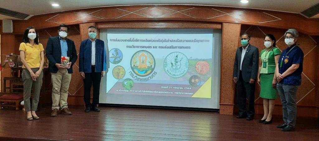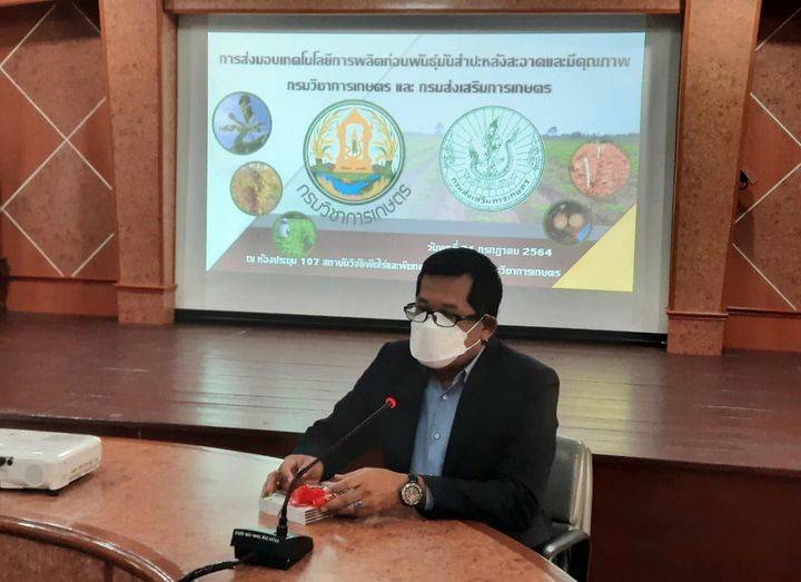 นายรพีทัศน์ อุ่นจิตตพันธ์ ผู้อำนวยการกองส่งเสริมการอารักขาพืชและจัดการดินปุ๋ย กรมส่งเสริมการเกษตร เป็นผู้แทนกรมส่งเสริมการเกษตร รับมอบคู่มือการผลิตท่อนพันธุ์มันสำปะหลังสะอาดและมีคุณภาพ จากกรมวิชาการเกษตร จำนวน 1,000 เล่ม เตรียมพร้อมส่งมอบให้กับเจ้าหน้าที่ผู้รับผิดชอบโครงการเพิ่มประสิทธิภาพการควบคุมโรคใบด่างมันสำปะหลังแบบครอบคลุมพื้นที่ เพื่อเป็นข้อมูลสำหรับการปฏิบัติงานในพื้นที่