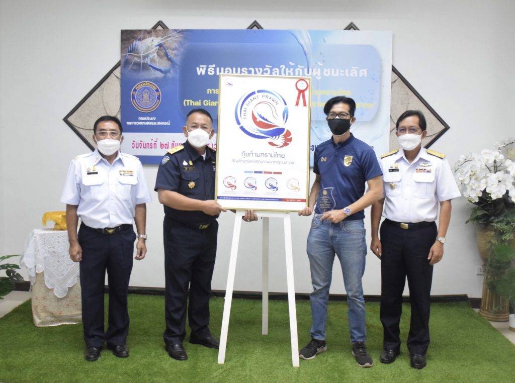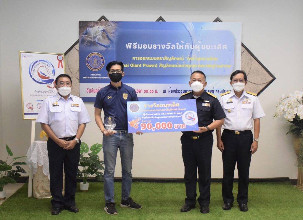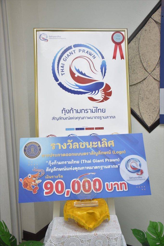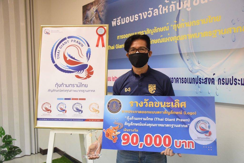 อธิบดีกรมประมง กล่าวต่อไปว่า สำหรับตราสัญลักษณ์กุ้งก้ามกรามที่กรมประมงจะใช้ในการส่งเสริมการตลาดจากนี้ไป เป็นผลงานจากการที่ทางกรมฯ ได้จัดกิจกรรมการประกวด โดยประกาศเชิญชวนให้นักเรียน นิสิต ศึกษา และบุคคลทั่วไปร่วมส่งผลงานการออกแบบตราสัญลักษณ์ (Logo) ภายใต้หัวข้อ “กุ้งก้ามกรามไทย (Thai Giant Prawn) สัญลักษณ์แห่งคุณภาพมาตรฐานสากล” เข้าประกวดเพื่อชิงเงินรางวัล 90,000 บาท พร้อมโล่รางวัลและประกาศนียบัตรในระหว่างวันที่ 15 มกราคม – 31 มีนาคม 2564 ที่ผ่านมา โดยปรากฏว่า มีผู้สนใจร่วมส่งผลงานเข้าประกวดจำนวนมากถึง 273 ราย ซึ่งขณะนี้กรมประมง และคณะกรรมการผู้ทรงเกียรติจากมหาวิทยาลัยศรีนครินทรวิโรฒ ประสานมิตร ได้ทำการตัดสินผลการประกวดดังกล่าวเรียบร้อยแล้วเมื่อวันที่ 27 เมษายน 2564 ที่ผ่านมา ผู้ที่ชนะเลิศในการประกวดการออกแบบตราสัญลักษณ์ฯ ได้แก่ นายธานี เหมือนนุช อายุ 52 ปี อาศัยอยู่อำเภอศรีราชา จังหวัดชลบุรี ซึ่งกรมประมงได้ทำการมอบเงินรางวัลและโล่ประกาศเกียรติคุณให้ไว้ในโอกาสนี้
