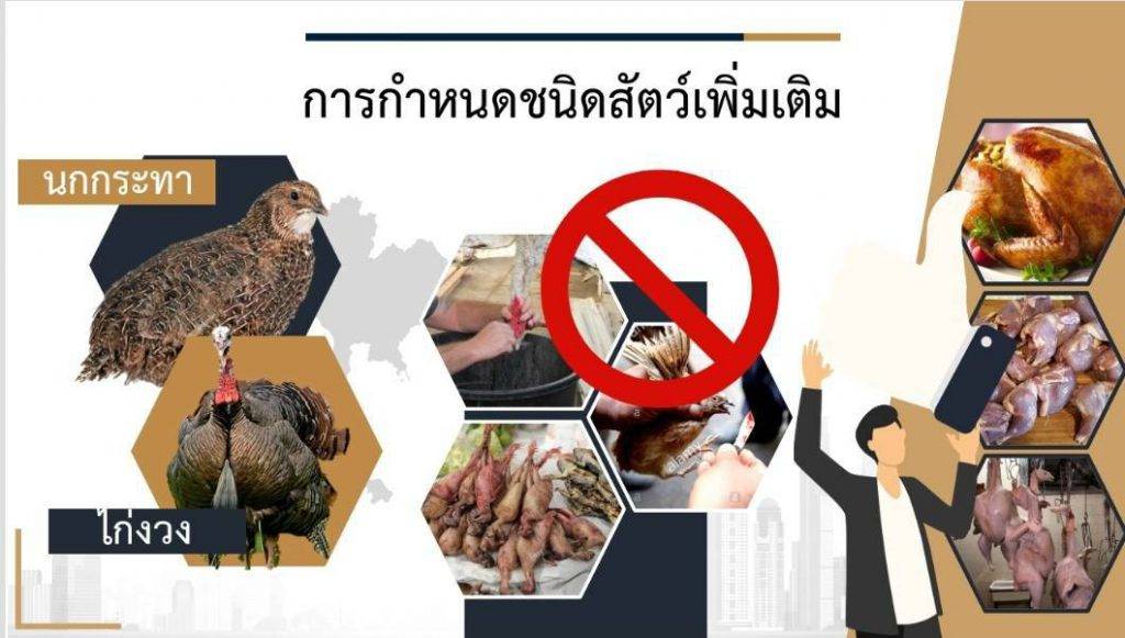 อธิบดีกรมปศุสัตว์ กล่าวเพิ่มเติมว่า นอกจากนี้เพื่อให้ครอบคลุมชนิดของสัตว์ที่ต้องอยู่ในการกำกับดูแลการประกอบกิจการฆ่าสัตว์ และเพื่อความปลอดภัยอาหารของผู้บริโภคยิ่งขึ้น เนื่องด้วยปัจจุบัน มีผู้บริโภคไก่งวงและนกกระทาเป็นจำนวนมาก เพื่อให้มีมาตรการตรวจสอบ ควบคุมหรือป้องกันมิให้โรคระบาดที่เกิดกับสัตว์ติดต่อมาสู่คน รวมถึงตรวจสอบสารตกค้างในเนื้อสัตว์ดังกล่าว ผู้บริโภคได้บริโภคเนื้อสัตว์ที่ถูกสุขอนามัย สมควรกําหนดให้ ไก่งวงและนกกระทา เป็น “สัตว์” ตามพระราชบัญญัติควบคุมการฆ่าสัตว์เพื่อการจําหน่ายเนื้อสัตว์ พ.ศ. 2559 จึงได้ร่างกฎกระทรวง กำหนดชนิดของสัตว์ที่ต้องอยู่ในการกำกับดูแลการประกอบกิจการฆ่าสัตว์ พ.ศ.2564 กำหนดให้ ไก่งวงและนกกระทา เป็นสัตว์ที่ต้องอยู่ในการกำกับดูแลการประกอบกิจการฆ่าสัตว์ ซึ่งแปลว่า การฆ่าไก่งวงและนกกระทาต้องทำในโรงฆ่าสัตว์ที่ได้รับอนุญาต โดยได้ประกาศลงราชกิจจานุเบกษา เมื่อวันที่ 26 ตุลาคม 2564 และมีผลบังคับใช้ 180 วันนับแต่วันที่ประกาศฯ ดังนั้น ผู้ประกอบการโรงฆ่าสัตว์ที่ประกอบกิจการฆ่าสัตว์ สำหรับนกกระทาและไก่งวงจึงมีระยะเวลา 180 วันนับแต่วันที่ประกาศฯ ที่จะขออนุญาตให้ได้โรงฆ่าสัตว์ที่ได้รับอนุญาตก่อนเป็นโรงฆ่าสัตว์เถื่อน ซึ่งหากไม่ทำตามมีความผิดตามพระราชบัญญัติควบคุมการฆ่าสัตว์เพื่อการจําหน่ายเนื้อสัตว์ พ.ศ. 2559