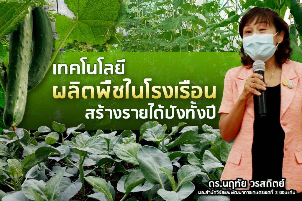 สวพ.3 ขอนแก่น คลอดเทคโนโลยีผลิตพืชในโรงเรือน สร้างรายได้ให้เกษตรกรผลิตได้ตลอดปี แก้ปัญหาโรคแมลงศัตรูพืชระบาด วิจัยและทดสอบ 3 ปีได้ต้นแบบโรงเรือนและระบบปลูกพืช 9 ชนิดเหมาะสมกับพื้นที่ภาคอีสานตอนบน ปูพรมขยายผลเทคโนโลยีสู่เกษตรกร ชูผลิต 2 พืชในโรงเรือนสร้างรายได้ปัง คะน้าฮ่องกงกว่า 8 หมื่นบาท/โรงเรือน ส่วนแตงกวาญี่ปุ่นรายได้รวมกว่า 17,000 บาท/รอบการผลิต