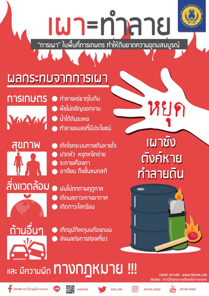 การเผา = ทำลาย 28 ก.พ. 256328 ก.พ. 2020 webmaster Infographic 997 การเผา = ทำลาย ข่าวที่เกี่ยวข้อง ถ่านอัดแท่ง พลังงานทดแทน เพิ่มรายได้ วัสดุเหลือทิ้งจากกาแฟ สู่ปุ๋ยหมักรักษ์โลก เกษตรเมืองสระแก้วได้พัฒนา “ไลน์บอทโรคข้าว” คำแนะนำการปลูกพืชใช้น้ำน้อย หลังเก็บเกี่ยวข้าวนาปี พืชผักกับฤดูฝน แปรรูปลำไยให้แซบนัว! กลายเป็น “ยำลำไย”