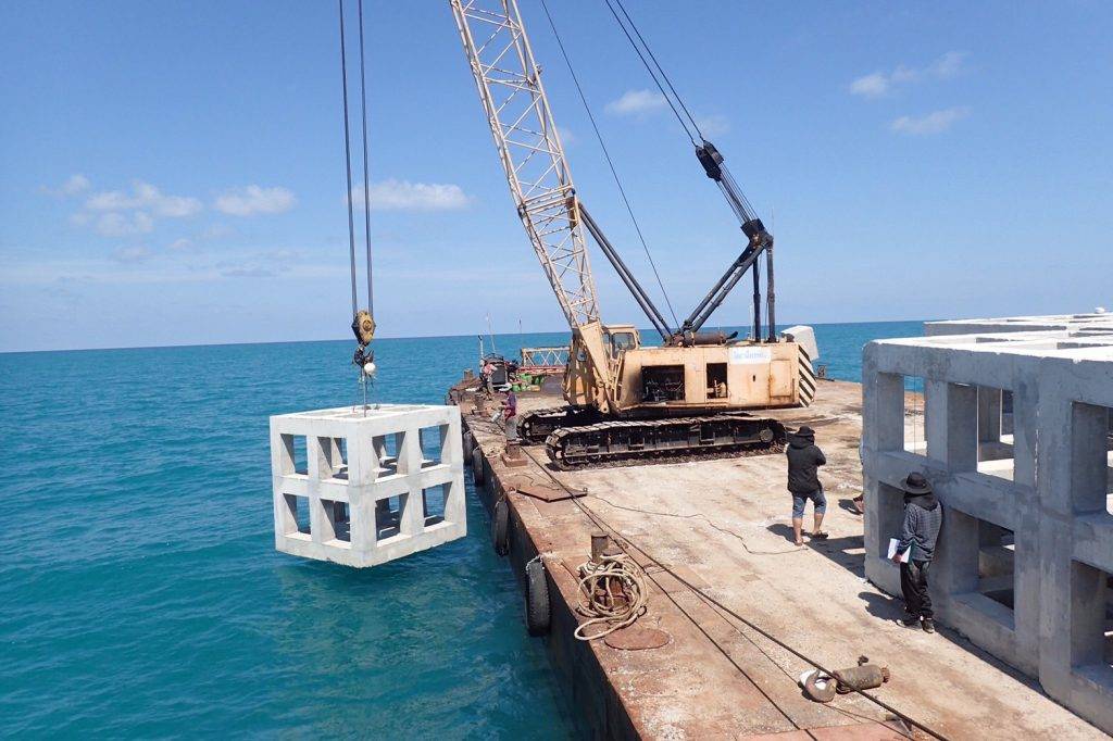 สำหรับโครงการจัดสร้างปะการังเทียม มีเป้าหมายจัดสร้างปะการังเทียมจำนวน 872 แท่ง พร้อมนำไปจัดวางในพื้นที่ 4 แห่ง 4 จังหวัด โดยดำเนินการจัดวางปะการังเทียมแท่งคอนกรีตขนาด 1.5 x 1.5 x 1.5 เมตร จำนวนพื้นที่ละ 200 แท่งและปะการังเทียมแท่งคอนกรีตขนาด 3 x 3 x 3 เมตร จำนวนพื้นที่ละ 18 แท่ง จัดวางในพื้นที่ ดังนี้