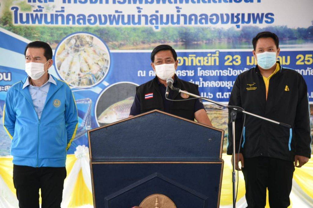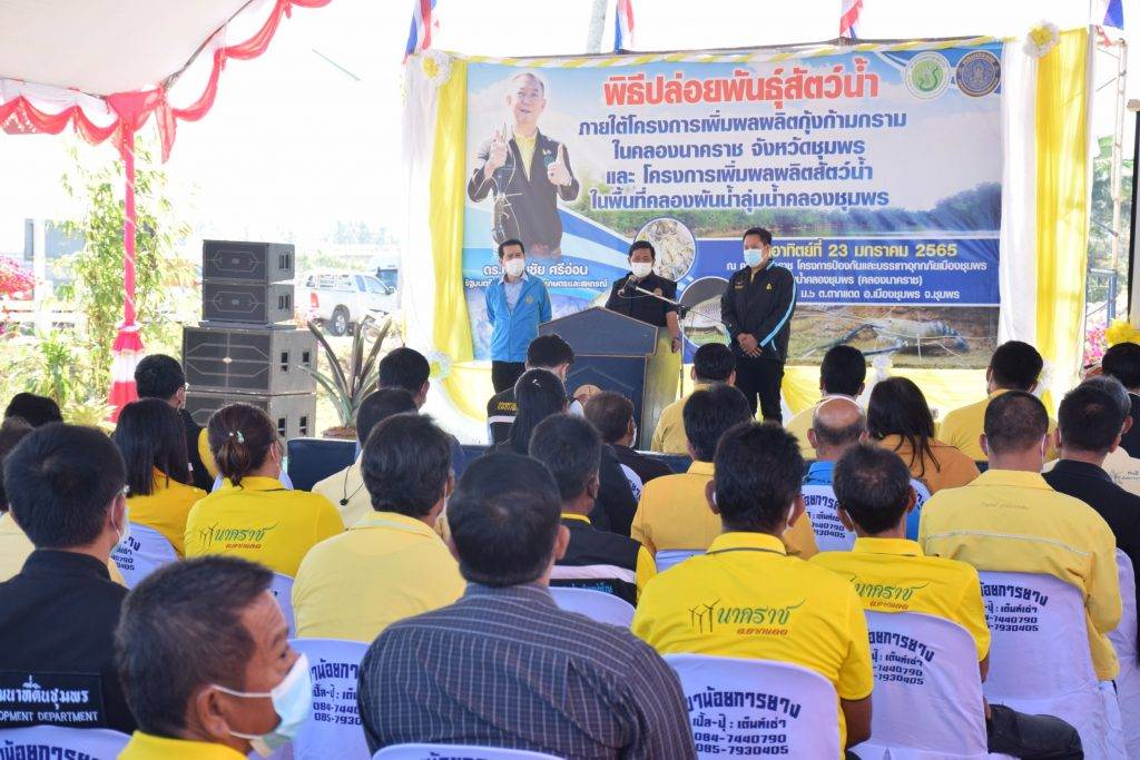 นายเฉลิมชัย สุวรรณรักษ์ รองอธิบดีกรมประมง กล่าวว่า จากสถานการณ์การแพร่ระบาดของโรคติดเชื้อไวรัส โคโรนา 2019 (COVID-19) ที่ต่อเนื่องมาจนถึงปัจจุบัน ส่งผลกระทบต่อการดำรงชีวิต และการประกอบอาชีพของประชาชนทั่วประเทศ ตลอดจนส่งผลกระทบทางด้านเศรษฐกิจ การค้า และการผลิตทั้งทางตรงและทางอ้อมเป็นอย่างมาก ดร.เฉลิมชัย ศรีอ่อน รัฐมนตรีว่าการกระทรวงเกษตรและสหกรณ์ รับทราบถึงปัญหาความเดือดร้อนของพี่น้องชาวประมงและประชาชนที่ไม่สามารถหารายได้สำหรับจุนเจือครอบครัวได้เหมือนสถานการณ์ปกติ จึงได้มีนโยบายให้หน่วยงานต่าง ๆ ภายใต้สังกัดกระทรวงเกษตรและสหกรณ์ เข้ามากำกับ ช่วยเหลือ ดูแล และสนับสนุนการสร้างรายได้ให้แก่เกษตรกรและประชาชน กรมประมงในฐานะหน่วยงานที่ส่งเสริมให้มีการเพาะเลี้ยงสัตว์น้ำ และสร้างอาชีพ สร้างรายได้จากสัตว์น้ำให้แก่เกษตรกร จึงได้ดำเนินการจัดทำ “โครงการเพิ่มผลผลิตกุ้งก้ามกรามในคลองนาคราชจังหวัดชุมพร และโครงการเพิ่มผลผลิตสัตว์น้ำในพื้นที่คลองผันน้ำลุ่มน้ำคลองชุมพร เพื่อเพิ่มแหล่งอาหารโปรตีนและเพิ่มรายได้แก่ชาวประมงและประชาชน ประจำปีงบประมาณ 2565” ขึ้น เพื่อเพิ่มผลผลิตทรัพยากรสัตว์น้ำในแหล่งน้ำธรรมชาติให้กลับมามีความอุดมสมบูรณ์ ประชาชนสามารถเข้าถึงทรัพยากรสัตว์น้ำได้อย่างทั่วถึง สร้างความมั่นคงทางด้านอาหาร ตลอดจนสามารถจับสัตว์น้ำไปบริโภคและจำหน่ายได้เพิ่มขึ้น เกิดการสร้างรายได้ และก่อให้เกิดการฟื้นฟูเศรษฐกิจของชุมชนจังหวัดชุมพร ตลอดลุ่มน้ำให้มีคุณภาพชีวิตที่ดีขึ้นอย่างยั่งยืนต่อไป
