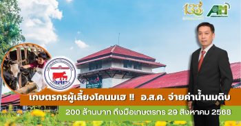 เกษตรกรผู้เลี้ยงโคนมเฮ !! อ.ส.ค. จ่ายค่าน้ำนมดิบ 200 ล้านบาท ถึงมือเกษตรกร 29 สิงหาคม 2568
